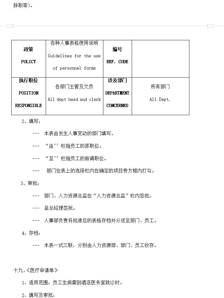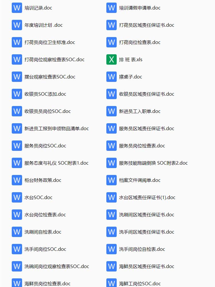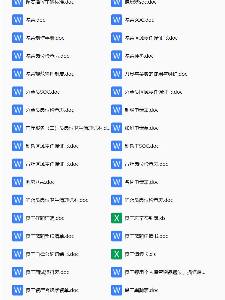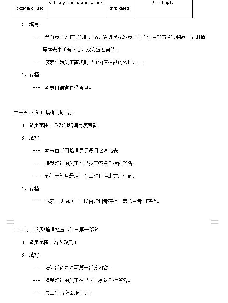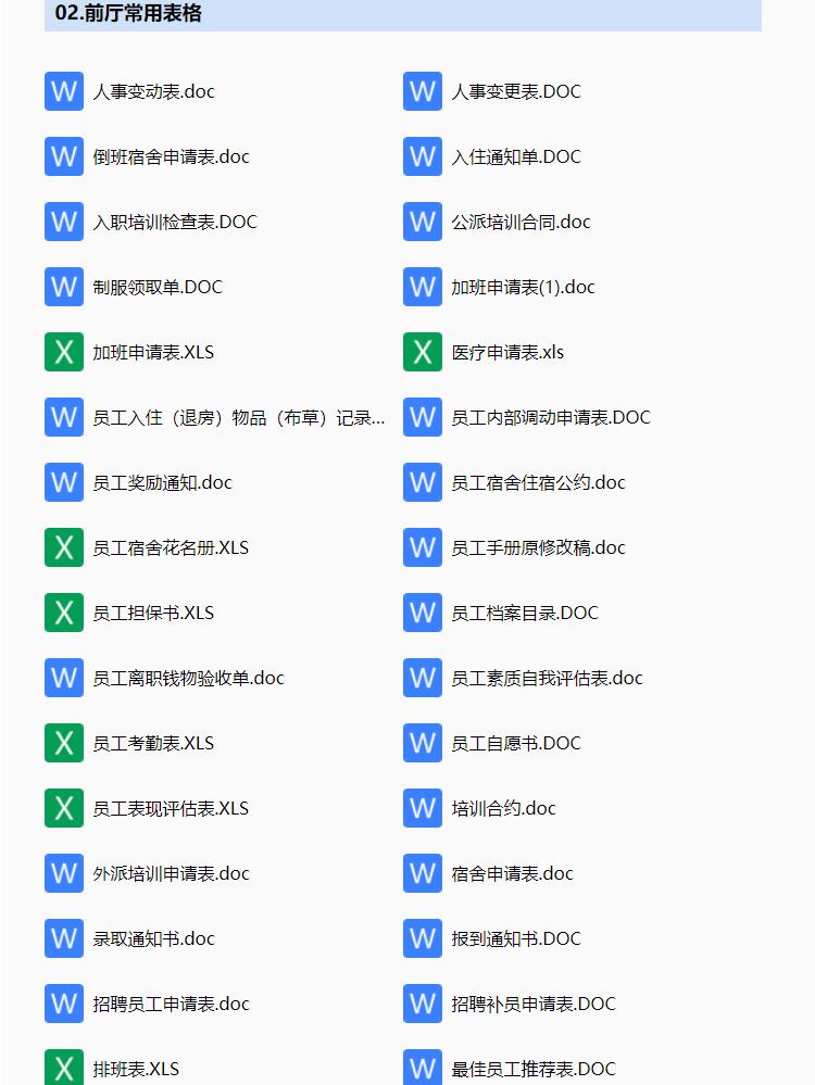 酒店行业常用表格资料合集,包含考勤表格,人事表格,计划报表等
