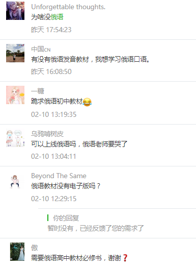 大家对于科学、俄语、日语等科目教科书以及中职教科书也有很强烈的需求。