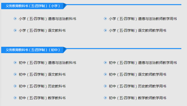 ①:根据实际教学,点击所需学段教材版本入口;