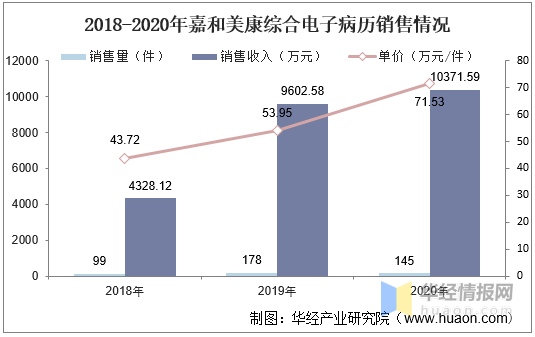 嘉和美康电子病历平台分为综合电子病历系统和专科电子病历系统,前者是适用于全院级的综合产品,后者是为满足专科临床需求而开发的具有临床深度、贴近专科流程的临床应用管理系统。据统计,截至2020年嘉和美康综合电子病历销量145件,销售额1.04亿元,单价为71.53万元/件。