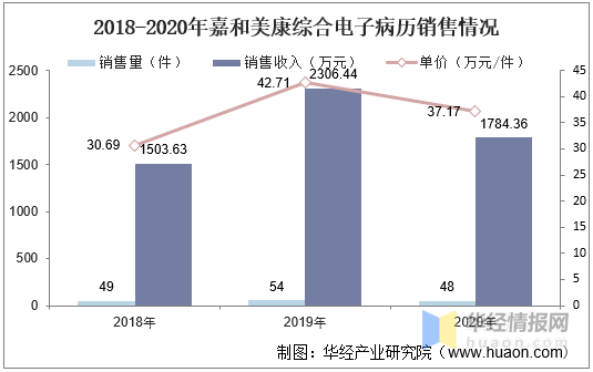 综合电子病历由众多模块组成,价格与医院床位数、模块数量、管理范围相关。据统计,截至2020年嘉和美康综合电子病历销量为48件,销售额为1784.36万元,均价为37.17万元/件。