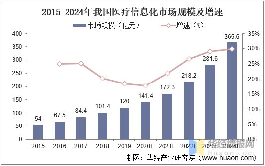 近年来在政策与需求的双重推动下,我国数字化医院建设持续升温,医疗信息化市场规模稳步增长,据统计,2019年我国医疗信息化市场规模为120亿元,预计到2024年增长至365.6亿元,2019-2024年CAGR为32.9%,行业保持高速发展。