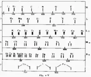 KLL:左边代表起始空穴的电子层,中间代表填补起始空穴的电子所属的电子层,右边代表发射俄歇电子的电子层。