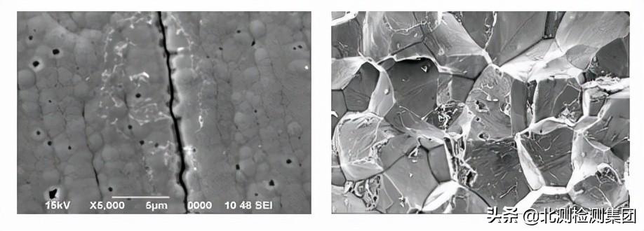 使用SEM观察表面镀层开裂形貌、观察不同材料断口微观特征形态及成分
