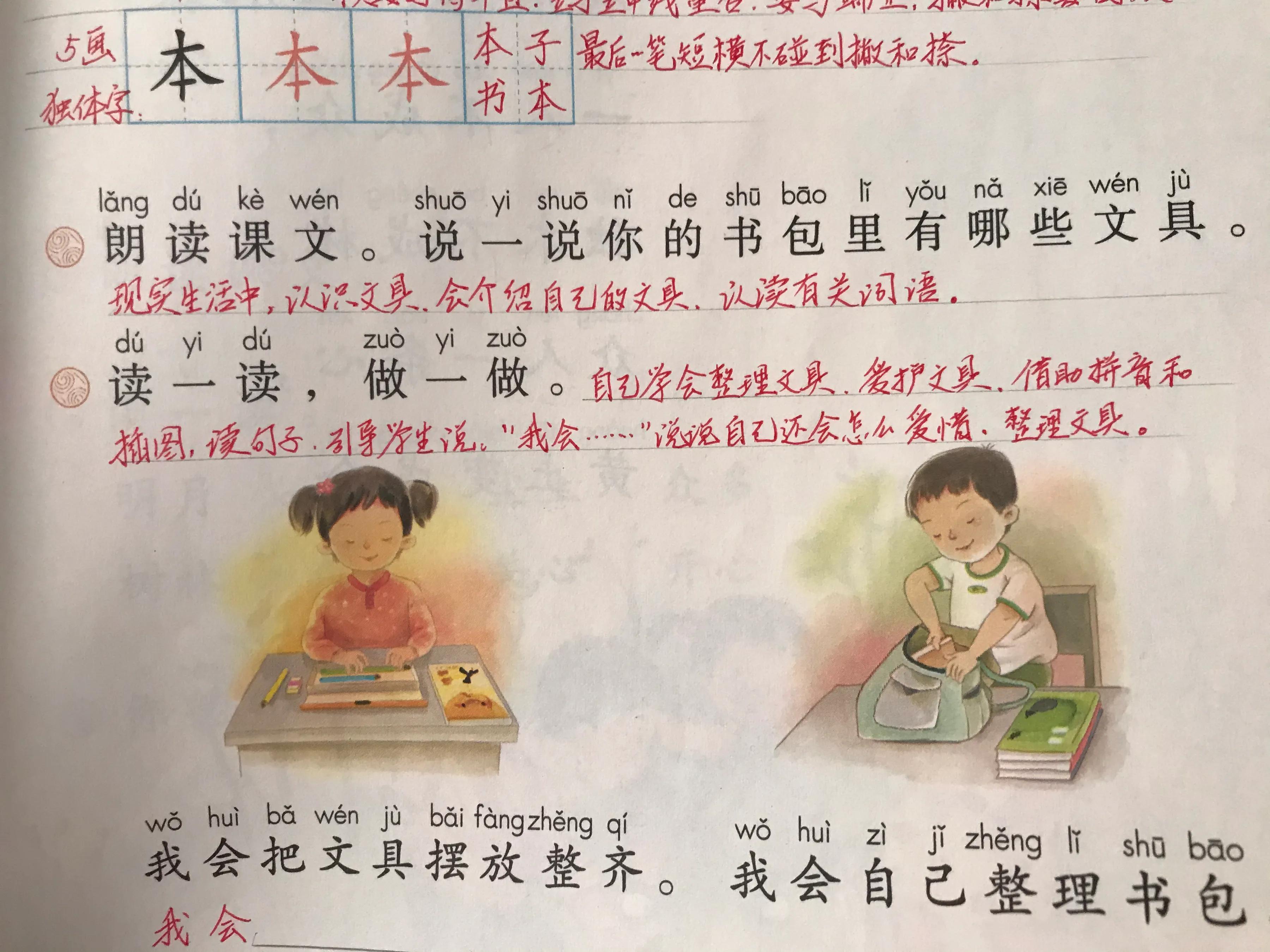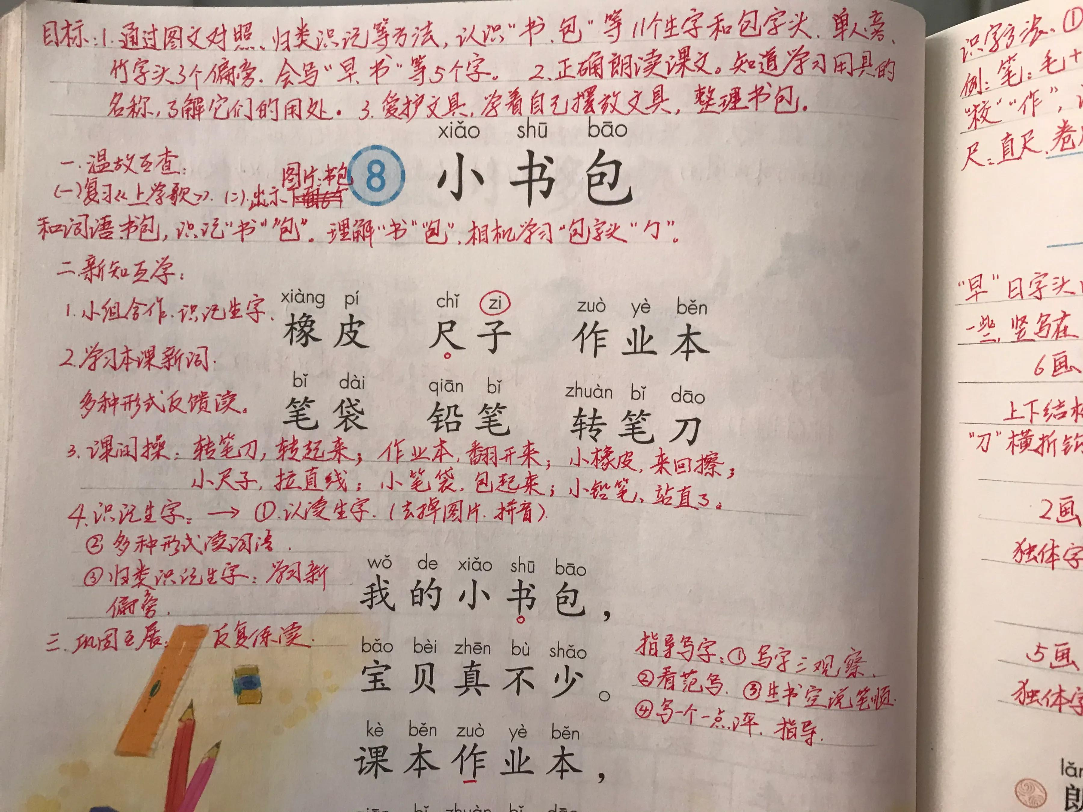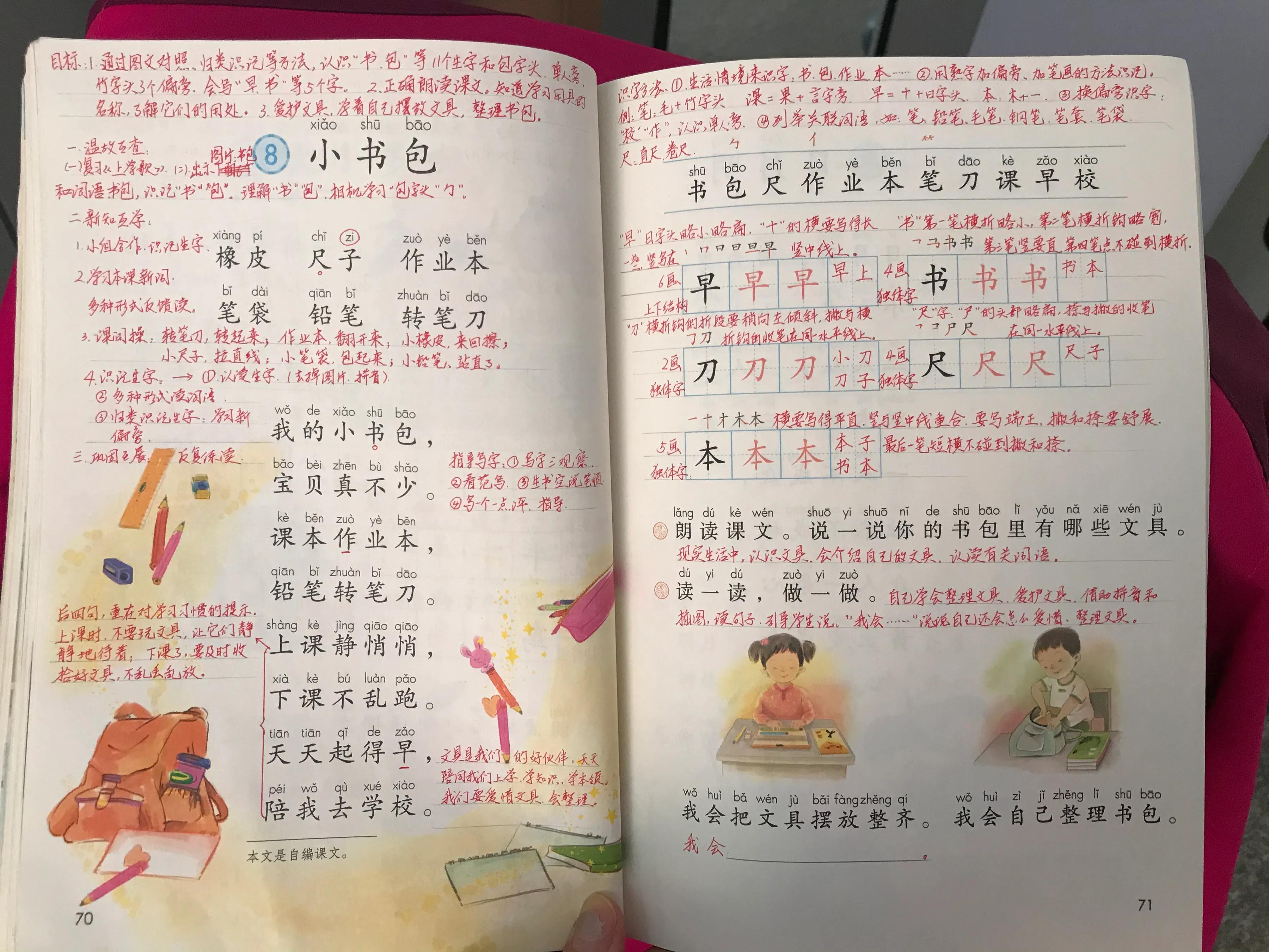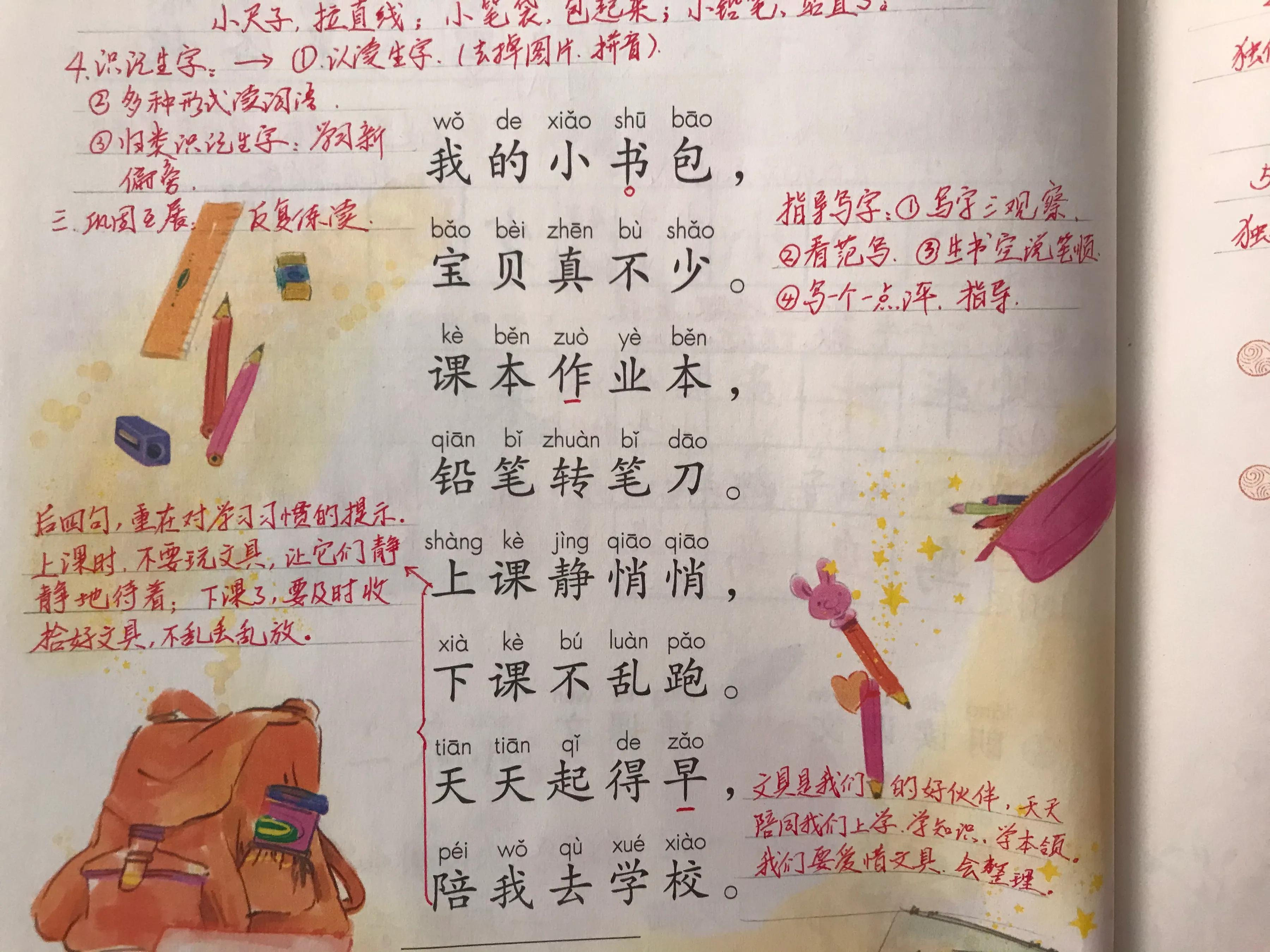 一年语文课《小书包》,看资深班主任手写笔记,渗透多种识字方法