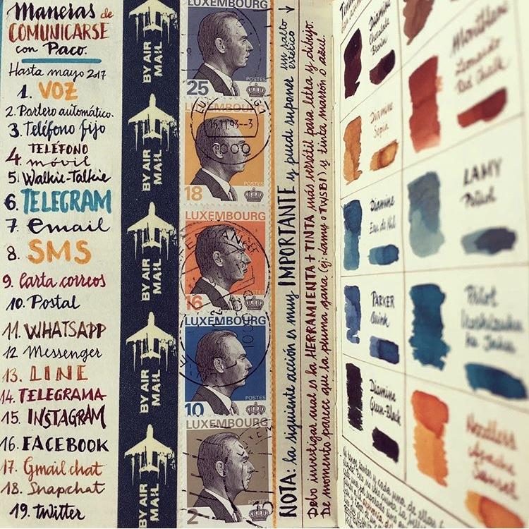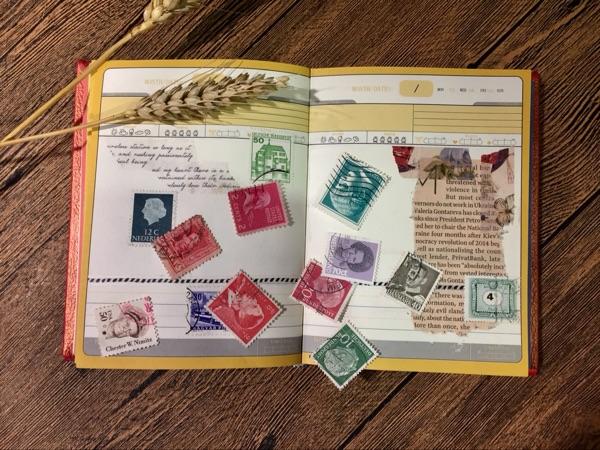 现在用传统方法写信的人真的不多了,邮票却是一个很好的素材。建议去网上选购一些用过的旧邮票,尤其是国外的那种。不要小瞧这种小物件,连手帐大师Jose naranja也在用这种邮票呢。