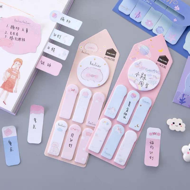 这是大家比较常用的办公小物件,小巧精致,价格不贵而且耐用。便签也分很多种,花色样式也越来越多,逐渐地备受手帐族的偏爱。一般用来标注页码、日期或事件,也可以在便签上书写文字图画,然后贴在手帐里,用法多样,多备一些也是可以的。