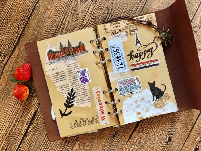 其实这属于包装纸的一种,只不过这类纸使用更广泛,信封、文件袋等都可以收集到,牛皮纸泛黄的色调也是自带复古感,在上面书写涂画,然后贴在手帐里,或者也做手撕、烧边的处理也是可以的。