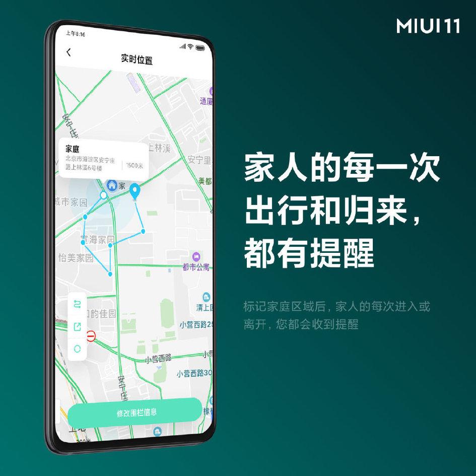MIUI11 新增亲情守护,支持安全围栏、运动轨迹功能