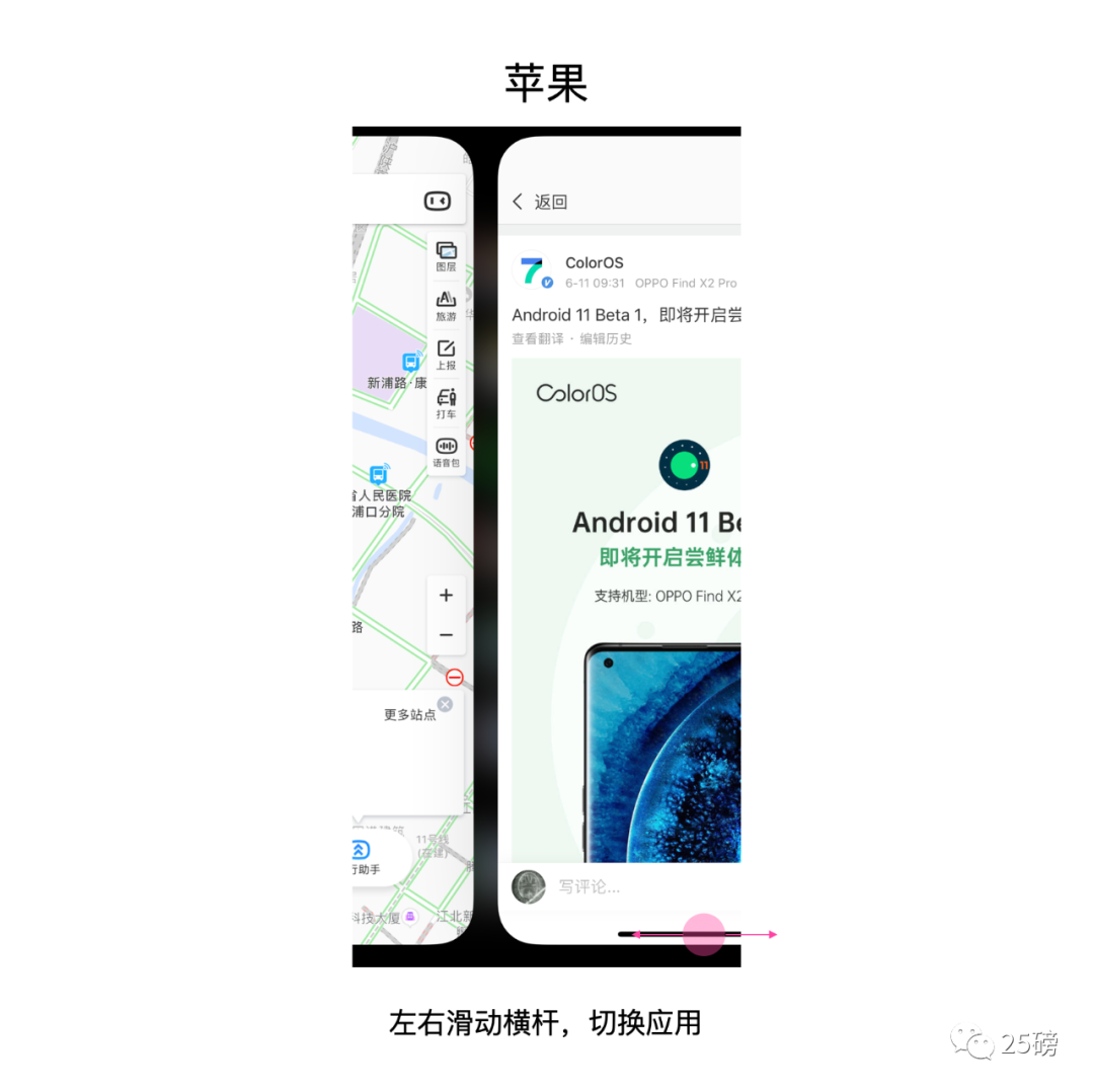 目前手机厂商普遍提供的应用切换方式是左右滑动底部横杆,这个操作也足够方便,但用户不会时刻记得屏幕左侧、右侧是哪个应用,对于切换操作没有明确的预期。