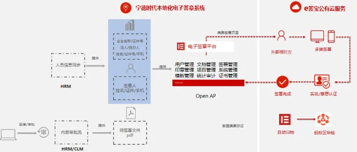 利元亨与e签宝合作,将e签宝电子签章服务接入内部SRM系统、HR系统,实现采购、人事等场景的线上一体化文档管理。