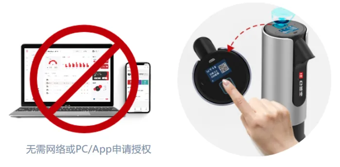 可通过便携式印章机外带印章,通过手机App/小程序实时发起申请授权及启动盖印,实时记录用印信息。