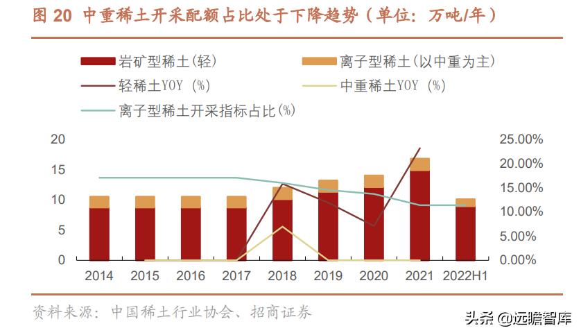 (2)政策端:严格控制离子型稀土开采总量,上游掌握定价话语权