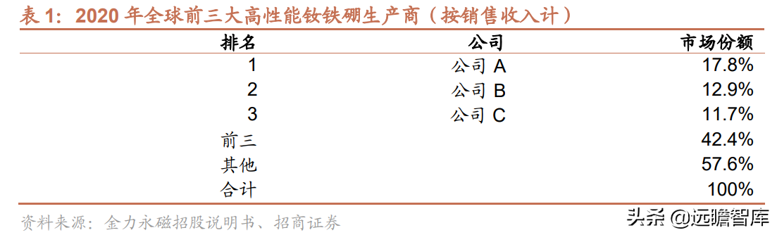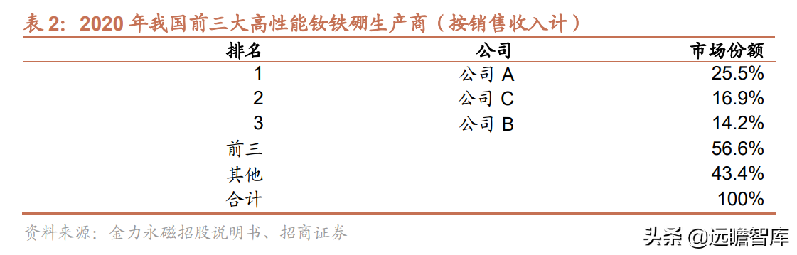 二、中国磁材占主导地位,高性能钕铁硼永磁材料企业集中度较高