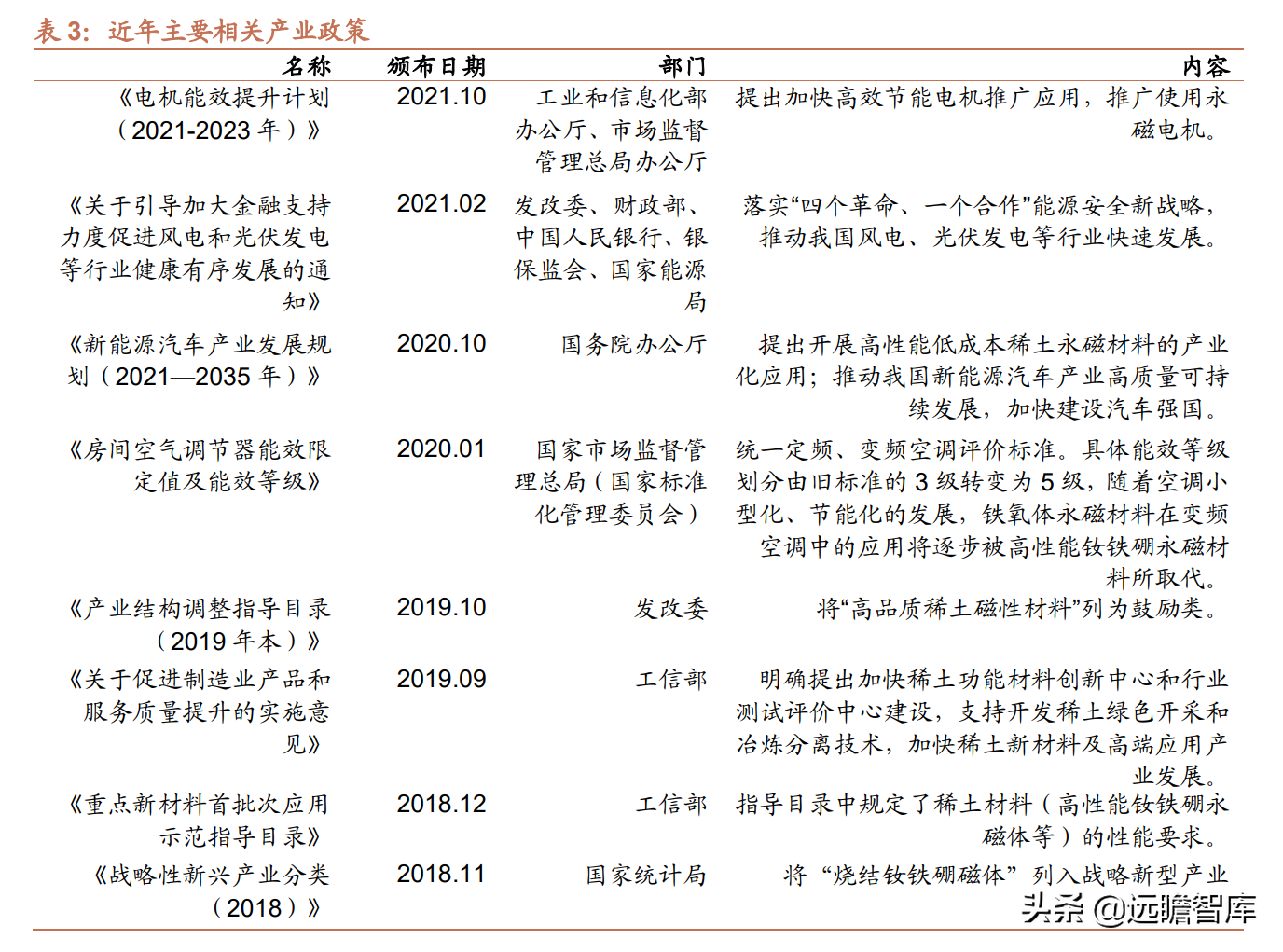 行业政策背景:“十四五”推动钕铁硼行业技术升级、高端应用普及