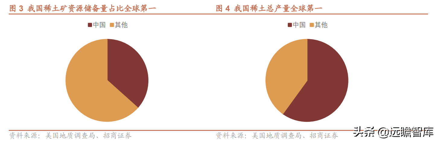 (1)资源端:中国稀土供给丰富保障行业稳定,中重稀土集中于中国的南方。