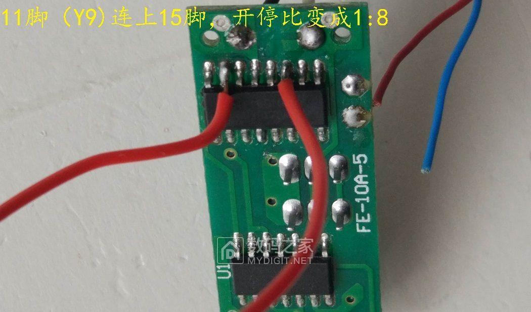 个人以为的开停比,在1:2或2:1比较合适(看网上对1:1的吐槽较多),最纠结的是老白不懂怎么改开停比。板上零件寥寥,硬着头皮对误以为的2个电阻和1个电容,用不同值的替换了观察效果。替换电阻没有新发现,开停比不变,开停周期时间也不变。