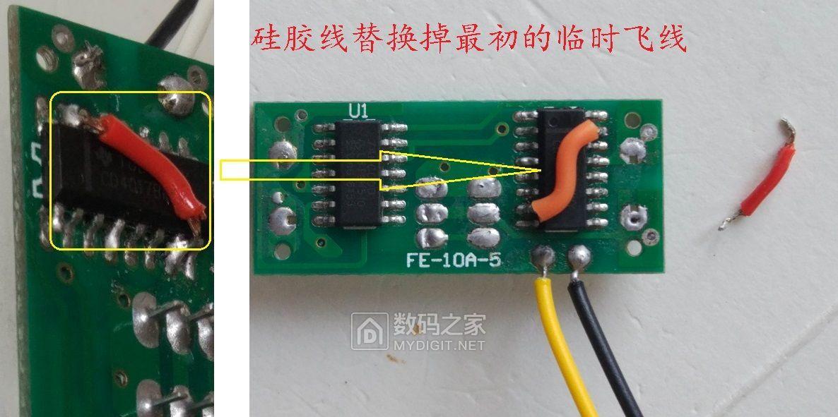 整个改造,仅增加如红圈内所示5个元件(均为常见,且可以通过拆机或廉价获得),和改造中拆除的元件数量(1N4007,J3Y,按钮开关、LED、R3)相当。