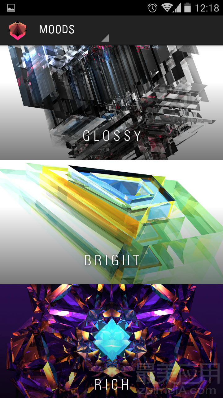 风格独特的两款图片应用,根据图片的更新时间而进行分类,不过每类图片风格相似。那么这两款应用有什么区别呢?Facets 主要倾向于具有绚丽多边形图案的图片,而 Kolor 主要偏黑白色调的图片,另外应用还提供图片黑白效果处理功能,用户可简单的将自己照片风格快速转换~