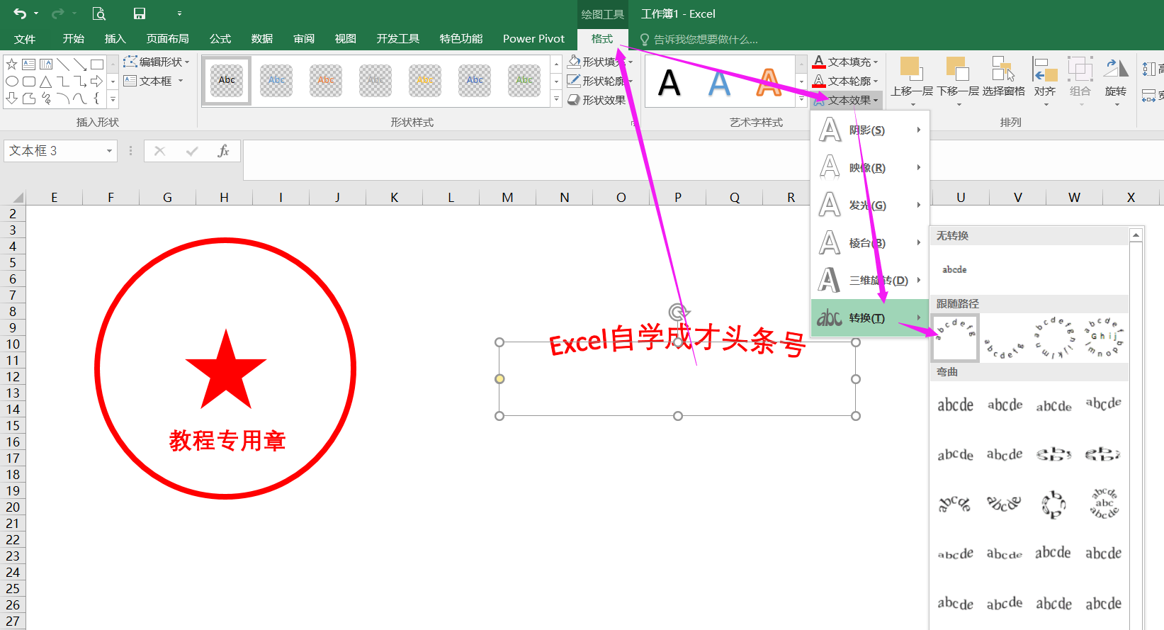 然后同样插入一个文本框,同样的设置,字体写Excel自学成才头条号