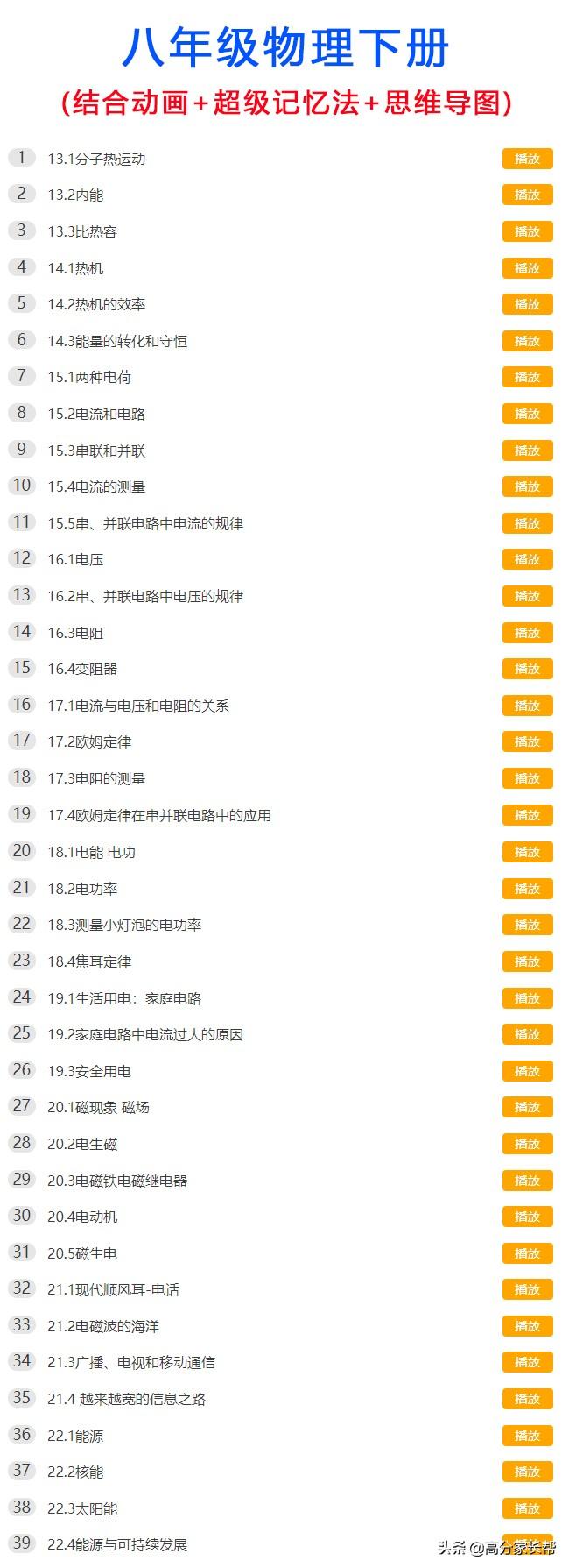 如需获取电子初中下册课程电子课本,关注后,私信“物化生课本1”即可。 课本内容预习讲解课程如下: