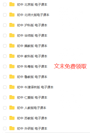2022秋最新初中电子课本,覆盖7、8、9 三个年级的:语文、数学、英语、物理、化学、生物、地理、政治、历史、美术 等多个科目。有人教版、鲁教版、冀教版、苏教版、仁爱版、外研版、湘教版、浙教版、牛津译林版、科粤版、教科版、华师版、沪科版、北师大版、北京版 等足足15个版本。