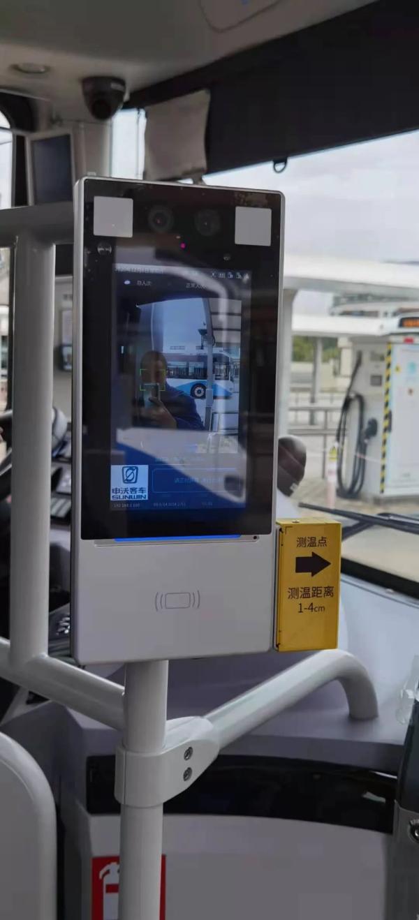 此外,新车型还增加了智能识别测温仪和紫外线消毒灯两大功能。当乘客没戴口罩与乘客体温异常时,会有语音提示播报,设备测温报警阀值为37.3度,超过阀值会语音报警并把数据自动上传后台。同时,驾驶员在离车前,打开消毒灯开关,开启消毒30分钟后自动熄灭,通过紫外线照射来确保杀灭空气中的细菌和病毒。