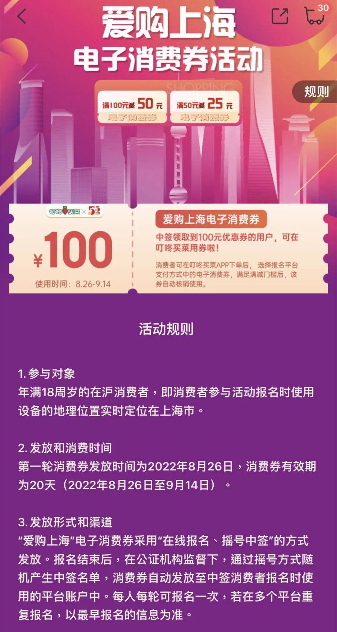 此次消费券活动覆盖中秋、国庆、“双11”等重点节假日,由微信、支付宝、银联三家平台发放,美团、大众点评、叮咚买菜、东方购物、饿了么、盒马、京东到家、京东等平台商户可支持核销,让消费者放心买买买。