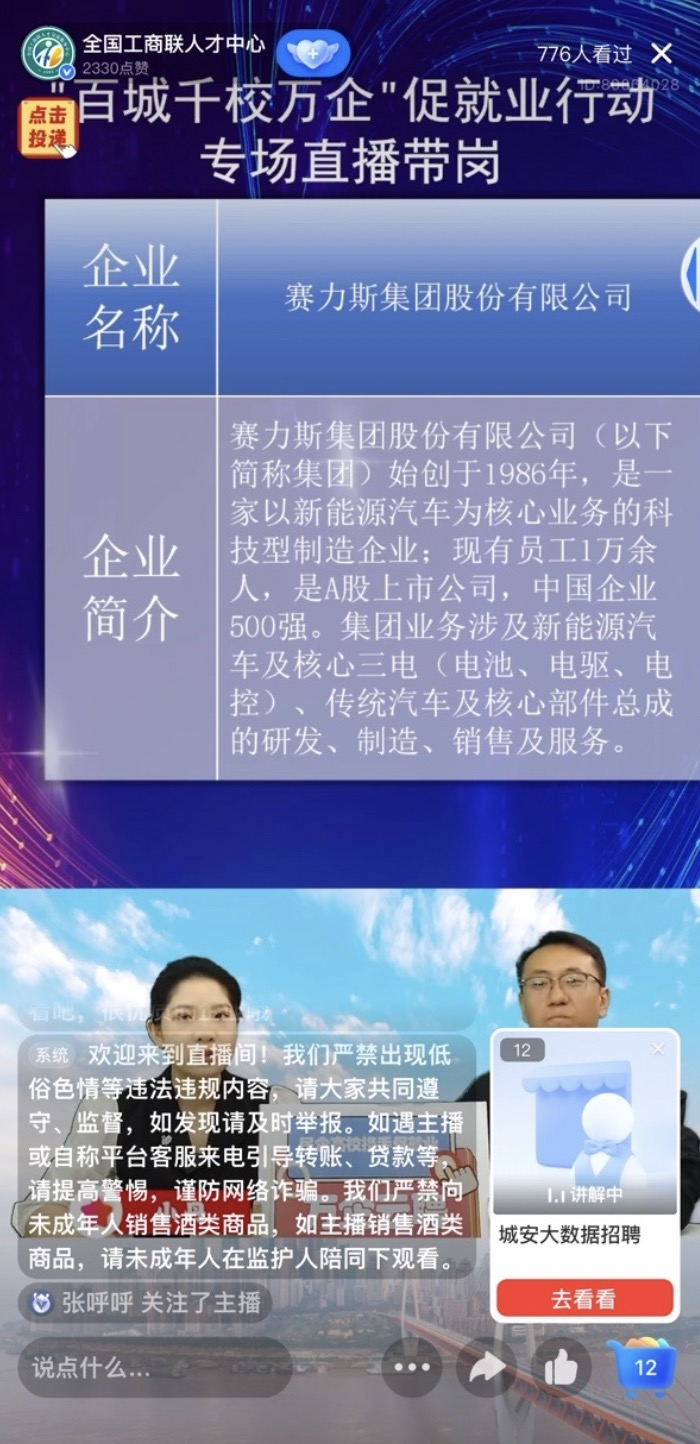 直播也已经成为年轻人求职就业的新渠道。记者了解到,此次全国工商联还以直播带岗的形式,帮学生快速了解春招职位信息,提升投递和应聘的效率。