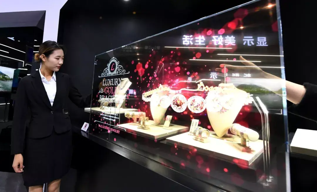 第十三届中国(合肥)国际家用电器暨消费电子博览会上展示的透明屏幕。