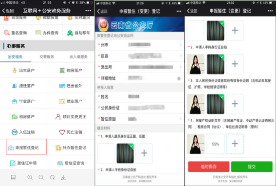 办理这些户籍业务不用再跑腿了。户籍在云南省内的群众可通过平台在线办理出生落户、死亡注销、公民入伍注销户口、购房落户、租房落户、实际就业落户、接迁(投靠)直系亲属落户、毕业落户、迁出省外、项目变更更正(姓名、性别、籍贯、出生地、服务处所、职业、血型、身高、现居住地、文化程度、婚姻状况、兵役状况、宗教信仰等)、申报暂住登记、补办暂住登记、居住证申领、居住证查询等14类户籍业务。