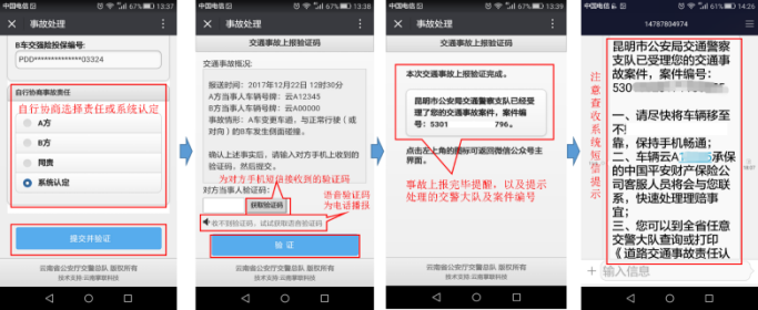 3、自行协商后提交并验证码验证、事故上报短信接收