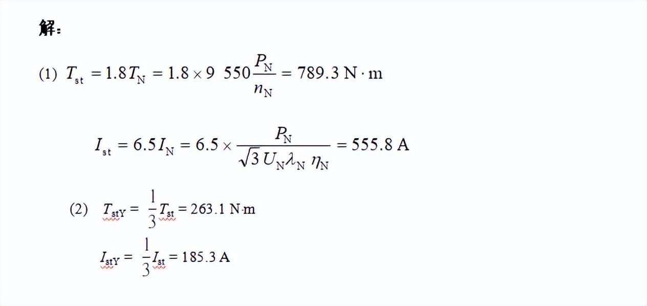 (1) 直 接 起 动 时 的 起 动 转 矩 及 起 动 电 流;