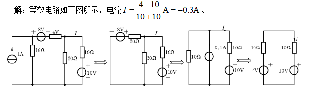 2、用电源等效变换法求电流 I 。(8分)