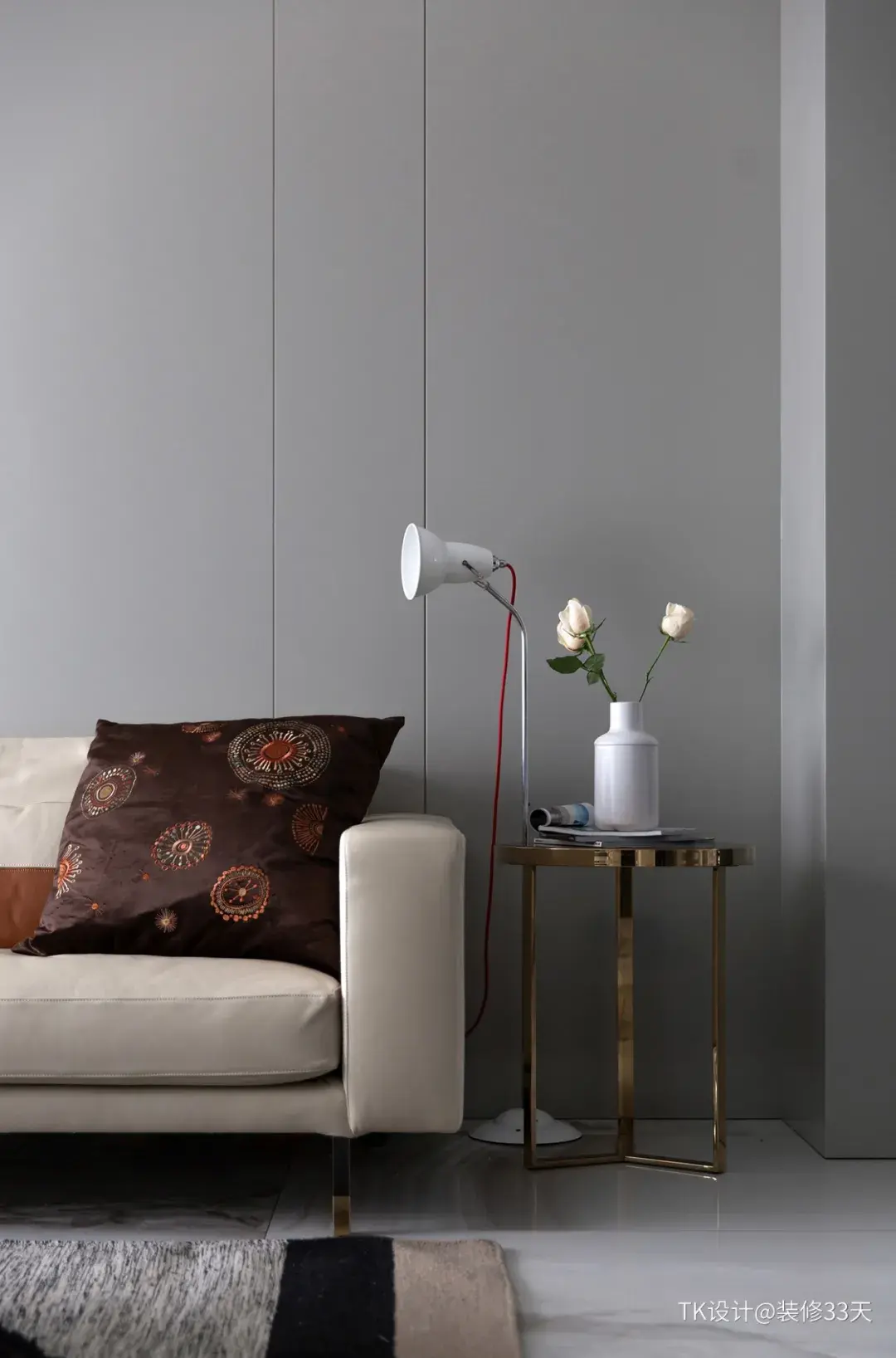 ▲ 客厅一角,用黄铜色做点缀,多了几分轻奢