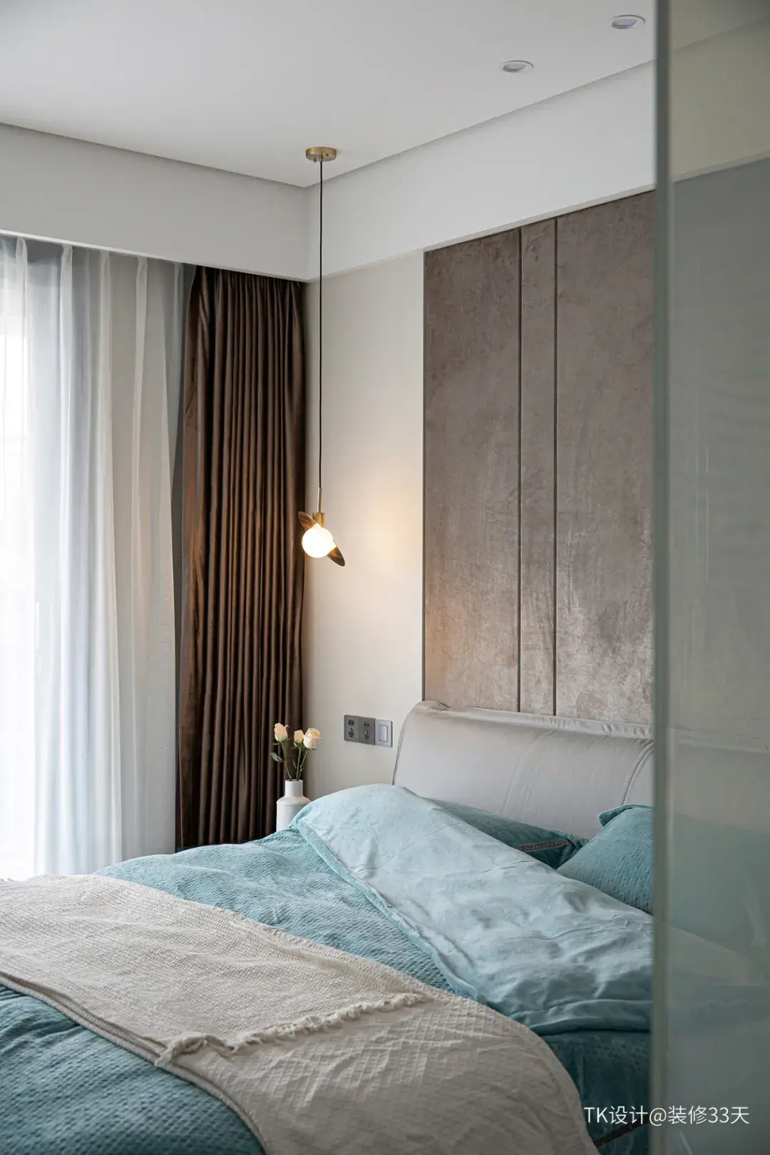▲ 黄铜色床头吊灯,满足照明的同时营造舒适睡眠氛围