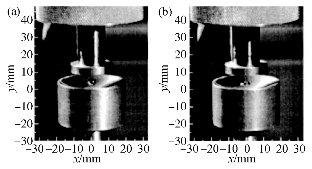 图4 地面上密度最大的固体铱(a)和密度最大的液体汞(b)的声悬浮
