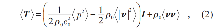 其中,和分别表示声压和质点速度,表示二阶单位张量,和分别是流体的密度与纵波声速,< >表示对物理量求时间平均。正因为声辐射力是一个时间平均量,故而又被称为稳态声辐射力。