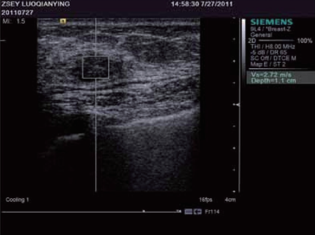 图13 乳腺良性纤维瘤患者的声辐射力脉冲成像图