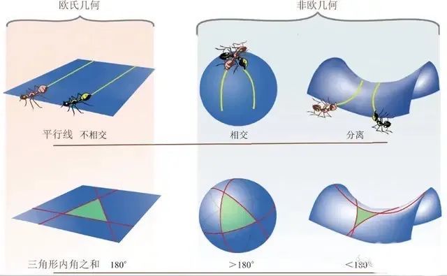 在欧几里得几何中,空间是平坦的,二维或三维的,而黎曼发现了空间的弯曲性质,提出可以通过引入更高维度来解释自然界的现象。