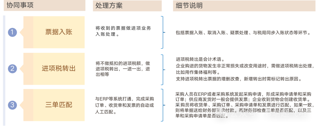 同时,系统间进行对接时,还会通过采购统计信息、报销统计信息等内容,完成数据的比对,以及纳税申报需要的进项信息的事前汇总等。
