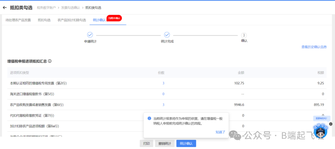 所有勾选抵扣数据,统一统计确认,用于纳税申报。