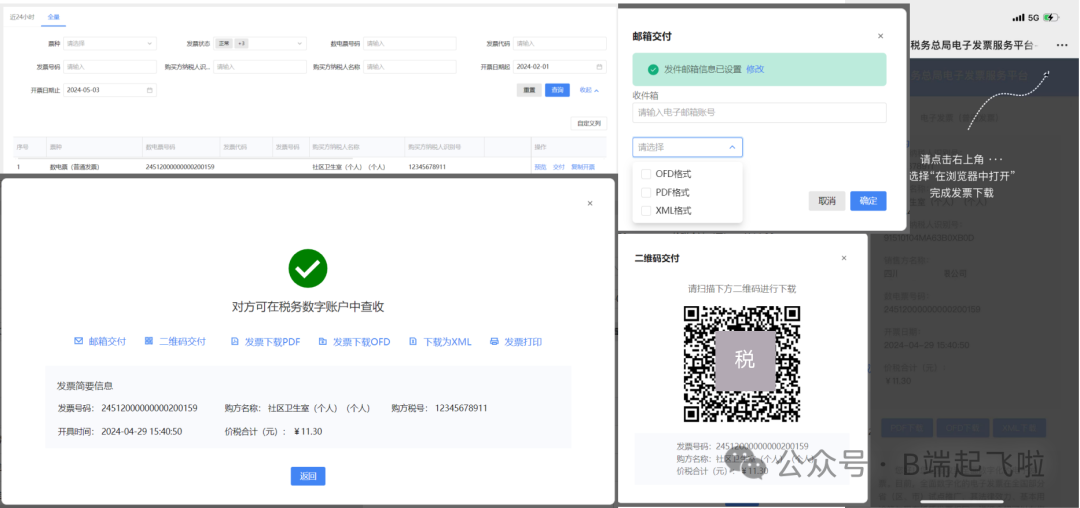 发票交付的页面示例如下图所示: