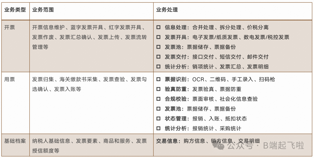 发票系统业务范围