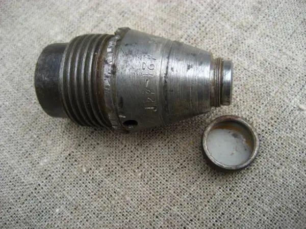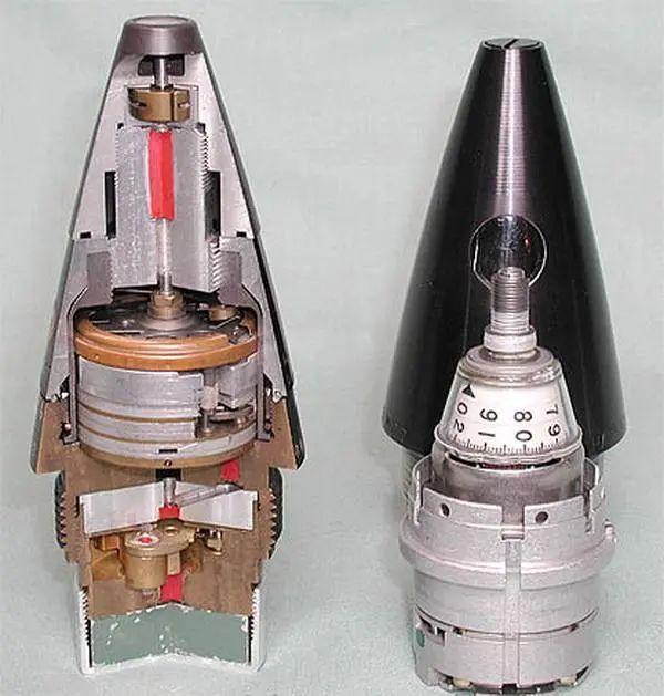 前苏联KTM-1引信,拧开前部盖子为瞬发,拧上盖子为延迟