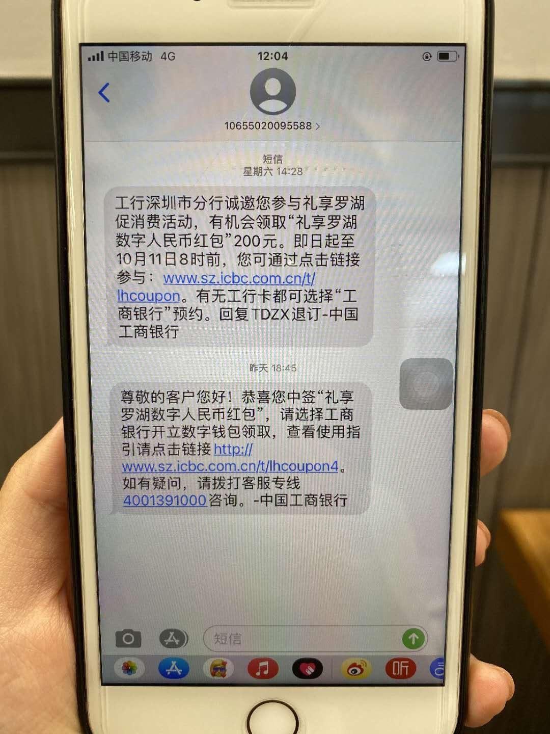 深圳官方于10月8日晚间宣布,面向在深个人发放1000万元“数字人民币红包”,每个红包金额为200元,红包数量共计5万个。逾190万人预约,中签率仅约2.6%。从10月12日18时起,陆续有中签的深圳市民晒出领取到的200元数字人民币红包。