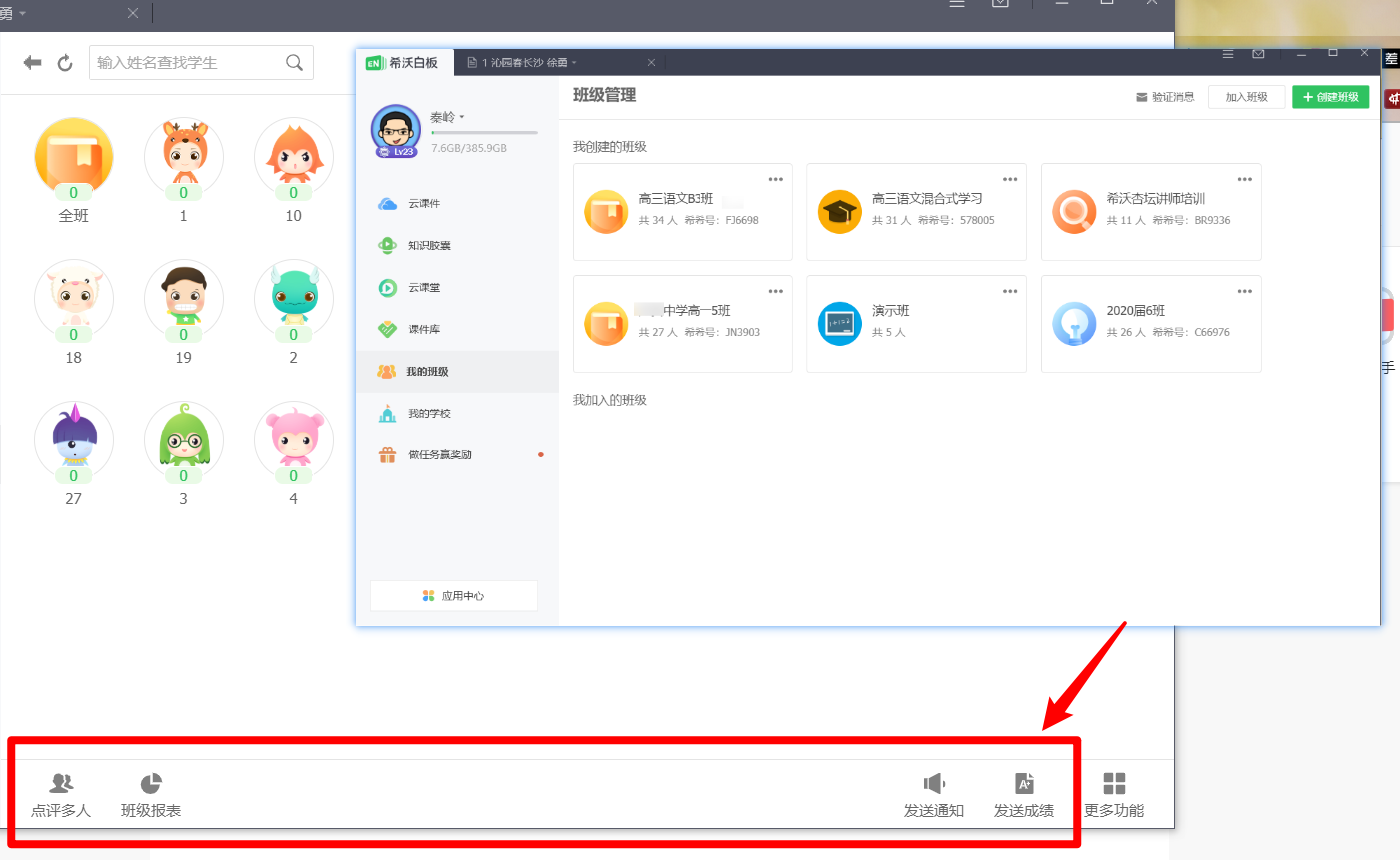 希沃白板2021实现了与希沃系班级优化大师管理工具的整合,教师不用另外安装班级优化大师,就能实现学生点评、班级报表查看、通知发送和成绩发送等主要功能,当然,如果需要实现随机点名、倒计时提醒等功能,还是建议安装一下班级优化大师哦。