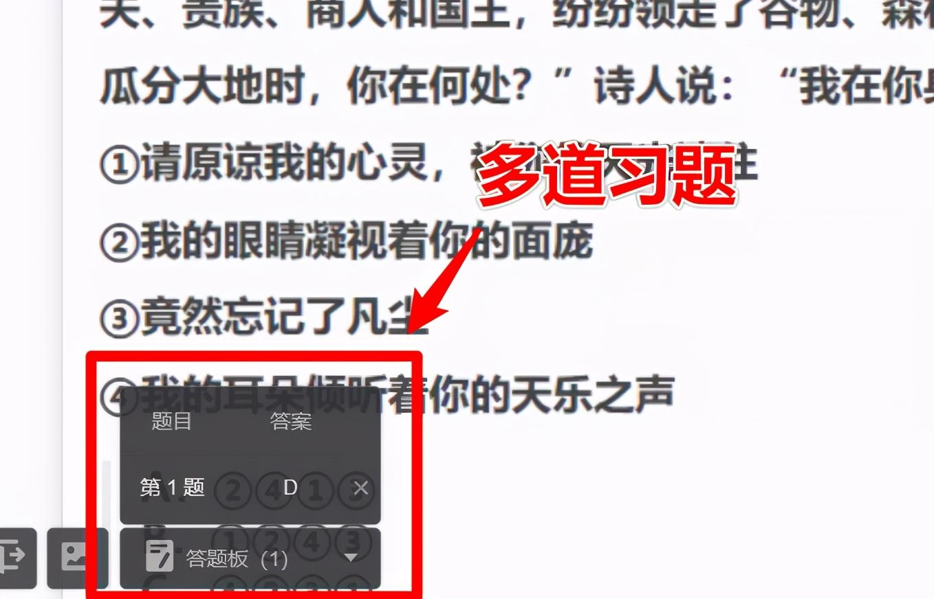 如果一页有多道习题,可以点击左下方的答题板进行设置和查看。