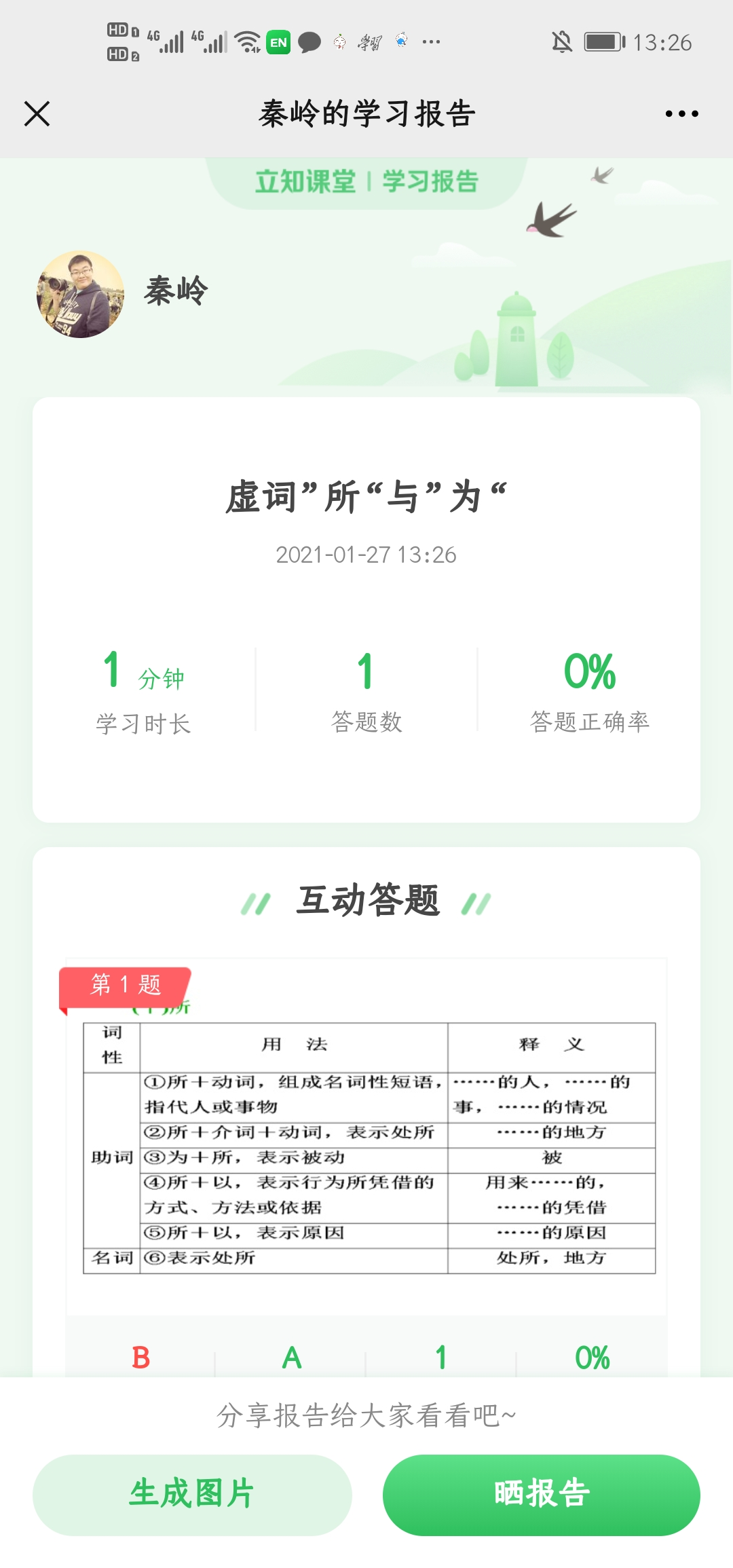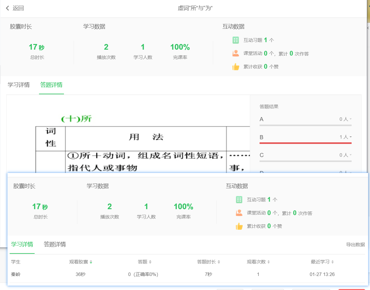 当然完成观摩之后,学生还可以在“立知课堂”查看本次课程学习的情况。