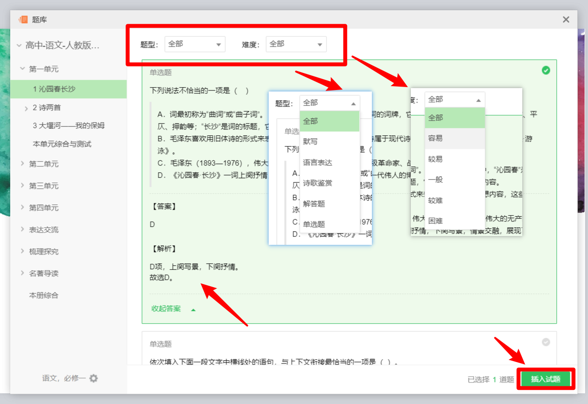 除了丰富的课件资源,希沃白板2021版还对题库资源进行了优化,支持多种题型。